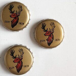 Lot of 4 comes with three stag head bottle caps and one credit card thickness metal bottle opener.