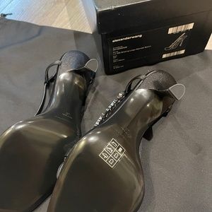 Aunthentic Stunning Alexander Wang heels with crystal logo detail.