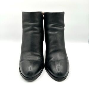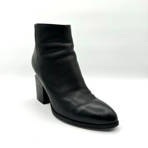 ALEXANDER WANG BLACK LEATHER BLOCK HEEL ZIP-UP BOOTS - SIZE 39.5 (EU)