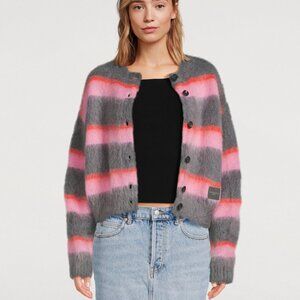 In cozy brushed mohair and wool, this oversized crewneck cardigan makes the most of its colourful stripes. An ALEXANDER WANG metal logo plate at the left hip completes the design.