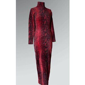 ALEXANDER WANG Snake Print Chenille Bodycon Turtleneck Maxi Designer Dress