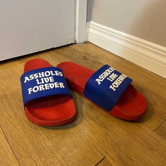 Good used condition “Assholes Live Forever” slides. American flag colourway.