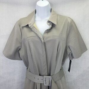 ALFANI Maxi Dress Women's 12 Gray Faux Leather Short Sleeve Belted Button Up NWT