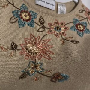 ALFRED DUNNER | Tan Short Sleeve Tee with Floral Embroidery