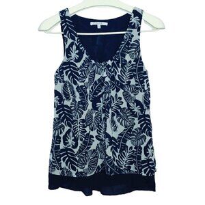 ALFRED SUNG Navy and white/light gray, leaf print, round and pleated neckline, all lined, small elastic at the back of the waist, light, fresh and flowy summer camisole, size small. Great pre-loved condition, no flaws! Nice super light and soft fabric, no stretch to it. See all measurements on the pictures and don't hesitate to ask if you have any questions. MAKE YOUR OFFER! BUNDLE & SAVE!!