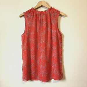 ALFRED SUNG Orange and Grey Floral Voile Sleeveless Tie Up Blouse
