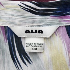 ALIA Black Purple White Blouse Size 16W 100% Polyester