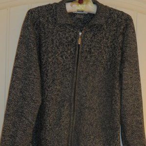 ALIA Heather Mix Black & White Zip Front Sweater Small (K381)