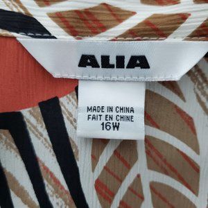 ALIA Red Black White Blouse Size 16W 100% Polyester