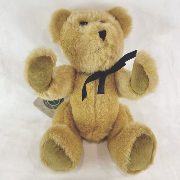 Alice is a light honey brown bear. She has her tags and is new old stock. She is fully jointed, she has black eyes and her paw pads are a suede velvet type material that is a greenish yellow. She is so silky. She is made with fake fur. She is a high quality bear. She is 11 inches tall. She has such a classic look.
