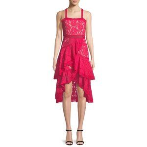 ALICE + OLIVIA Angelita Pink Guipere Lace Asymmetric Tiered Ruffle Dress, Size 4