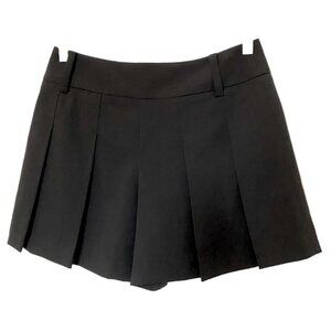 ALICE + OLIVIA BLACK HIGH RISE BELT LOOPS TROUSER SHORTS STYLE C001196036, This is a black formal trousers style pleated shorts that looks just like a skater skirt with a front zipper fastening and 2 hook & bare closure - belt loops - not pockets - pleated all around - waistline is not stretch yet shorts are stretch - spring, summer and fall favorite with stocking and ankle boots or loafers for a business / business casual sleek formal yet short length outfit, button down shirt, blouse or shirt an a blazer for a timeless, classic yet modern and trendy look.