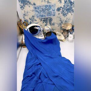 🆕 ALICE + OLIVIA 🧿 NWT Alita Spaghetti Strap Drape Asymmetrical Dress Blue Sz4