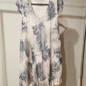 This is a beautiful, made in Italy by ALICE RINALDI summer dress.  The fabric is light for those hot summer days.  The dress is lined with cupped sleeves for an everlasting classy look.  Very flattering, very romantic ladies dress.  Size L.