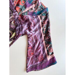 ALICE & TRIXIE Multi Color Scarf Print Silk Satin V-Neck Wrap Blouse, Size M
