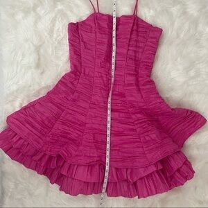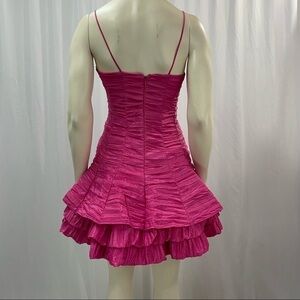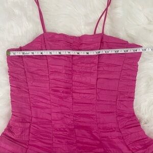 Gorgeous spaghetti strap A-line prom dress with full volume skirt supported by layers of tulle. There is a zipper in the back. Worn once. The seams in the top are reinforced with a stiff material that acts as a corset effect.