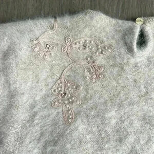This top is absolutely stunning. Made of angora rabbit hair blend and has shoulder pads. Perfect for any occasions.