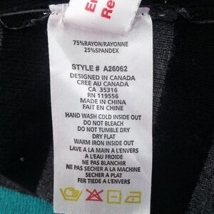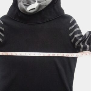 So unique, with Grey/BLack striped arms /back, bold splash of Aqua Blue trim on sleeves and body. Draw cord design to cinch the 5" collar for a unique look. Inside of collar is Grey.