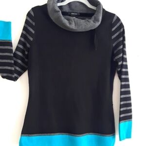 ALISON Sheri Design Luxury Knit Contemporary Sweater Grey/Black/Aqua Siz…