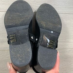 Round toe. Pull-on. Stacked heel. Buckle detail on the sides. Tonal stitching.