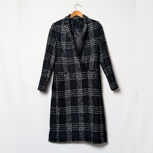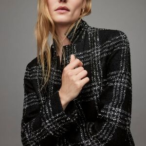 Smart moments are here. The Bexa is crafted from an Italian wool blend with textured checks all over. Double breasted with a stand collar - the silhouette is timeless.