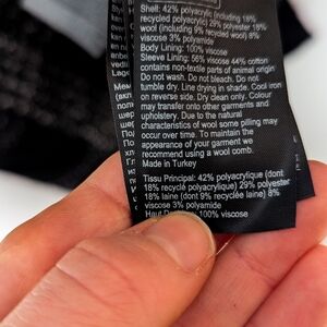 Material: 24% polyacrylic, 29% polyester, 18% recycled polyacrylic, 9% wool, 9% recycled wool, 8% viscose, 3% polyamide