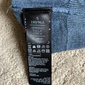 100% merino wool sweater. Crew neck with long sleeves and signature Ram Skull embroidery on chest. Very light weight, blue colour