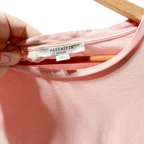 ALL Saints Wilma Pink Tee Crew Neck Twist Front Womens Size S T-Shirt Salmon
