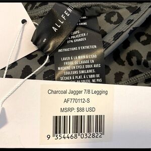 Brand new, never worn, with tags, Australian ALLFENIX high waisted charcoal JAGGER 7/8 legging with animal print design and interior pocket