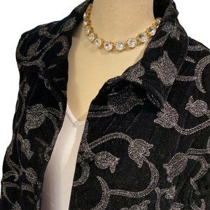 ALLISON DALEY Vest Size 18W Black Velvet with Raised Silver Flowers Curvy