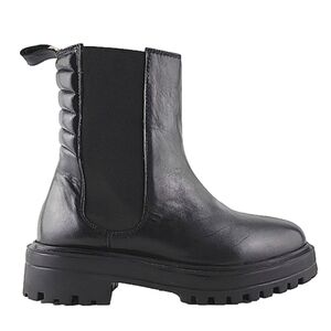 ALLONSI Women's Black Leather Pull On Ankle Boots Chunky Platform Lug Soles Sz 6