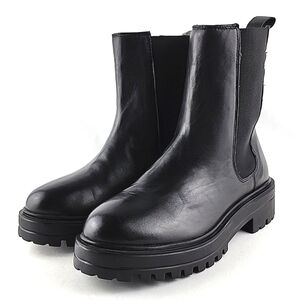 New without box, ALLONSI women's black leather pull on ankle boots with a platform chunky lug soles and comfy padded ankle shaft, size 6.