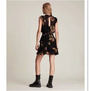 ALLSAINTS Caylan Avifauna Viscose Black Floral Sleeveless Mini Dress US 6