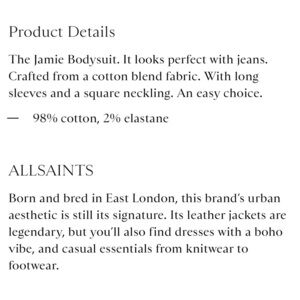 ALLSAINTS Jamie Long sleeve bodysuit size us 4