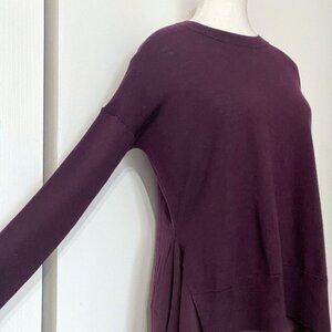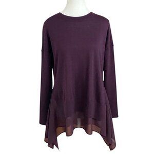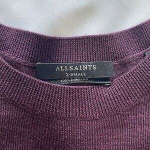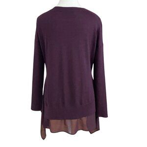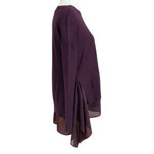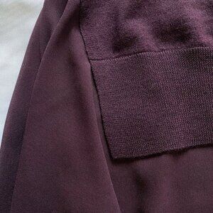 ALLSAINTS LIBBY PLUM 100% MERINO WOOL CONTRAST CHIFFON HEM SWEATER TOP - XS