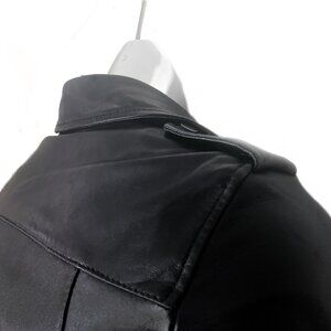 Rock a classically cool look with this iconic AllSaints Balfern Biker Jacket — a timeless British design crafted from buttery-soft 100% sheep leather that molds to your shape over time. This signature piece features snap-button notch lapels, three front zip pockets, asymmetrical zip closure, adjustable belted waist with buckle fastening, zipped cuffs, and epaulette shoulder detail. Size: US 2 / XS (underarm to underarm 14.5”; length 20.5”; sleeve length 22”). Material: 100% Sheep Leather; Body lining 62% Viscose, 38% Cotton; Sleeve lining 100% Polyester. EXCELLENT pre-owned condition with little to no visible signs of wear.