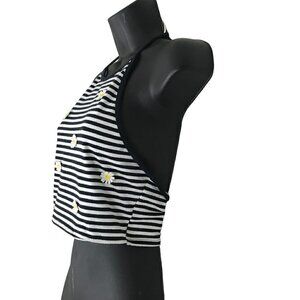 Almost Famous Black & White Stripped With Daisies Halter Top Size S