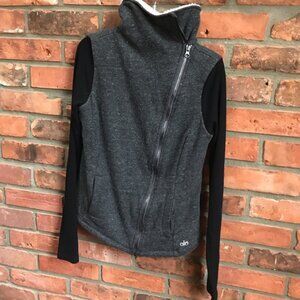 ALO Tao Asymmetric Zip Fleece Sherpa Sport Jacket Moto Cozy Yoga Stretch Zipper