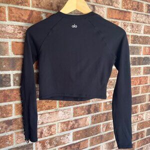 ALO Yoga Highline Fitted Crop Top with Unique Shoulder Design EUC