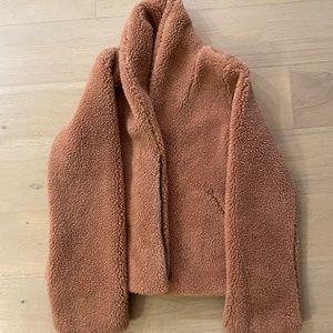 Cozy teddy jacket by ALO Yoga. Features a plush texture. Front pockets for convenience. Perfect for layering.