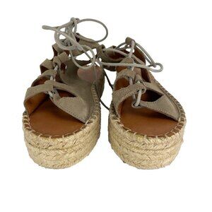 ALOHAS Boho Gladiator Suede Kaki Green Ankle Lace Rafia Flatform Sandals sz 35
