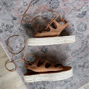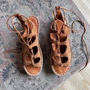 ALOHAS Suede Lace-Up Espadrille Platform Gladiator Sandals – Tan, Size 39 (US 8)