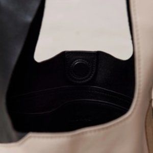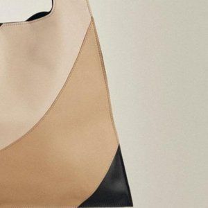 Entirely crafted from black and beige supple leather, the L makes the perfect multi-wear tote bag: it is large enough for your laptop, but also compact enough to carry just the essentials. The soft strap is long enough to fit comfortably over your shoulder. Set it against a monochromatic outfit to make its patchwork silhouette pop.