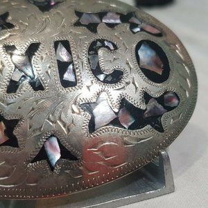ALPACA Belt Buckle Vintage MEXICO INLAY ABALONE