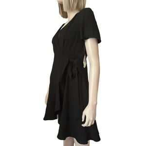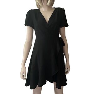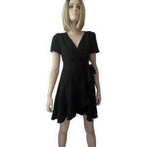 ALTAR'D STATE Black Dress Faux Wrap Cold Shoulder Fit Flare Asymmetrical V-Neck