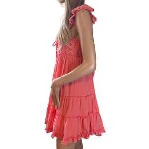 ALTAR'D STATE Dress Tiered Ruffled Ruched Pinafore Back Tie Bow Peach Coral NWOT