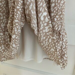 🤍Babydoll style cream printed mini dress with short puff sleeves