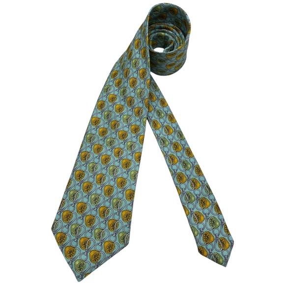 ALTEA Blue/Yellow/Green Lemon Silk LUXURY Tie ITALY