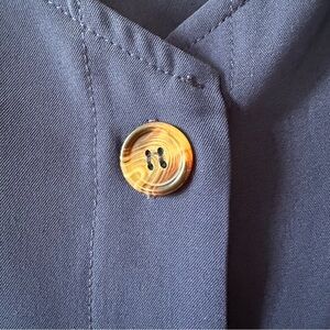 This versatile navy top features a stylish button-down design, perfect for any occasion. Its soft fabric and chic look make it a great addition to your wardrobe and be taken from day to evening. Wear it alone or under a jean jacket or blazer.