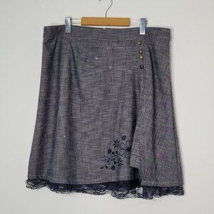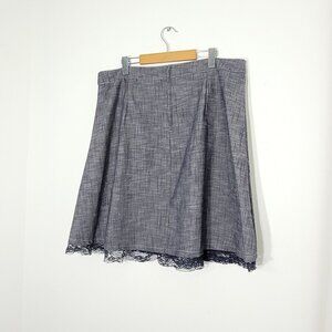 A-Line Skirt | Gray Lace Detail Stretch Size 17 Floral Embroidery